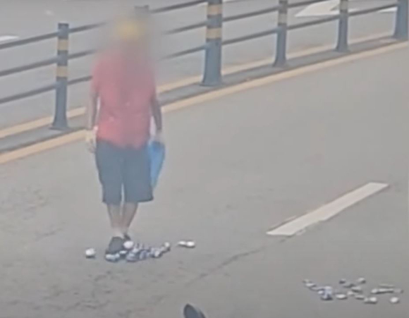 지난 2일 JTBC '사건반장'은 서울 성북구 한 도로 위에 캔을 뿌려 놓는 한 노인의 모습을 제보받아 보도했다.