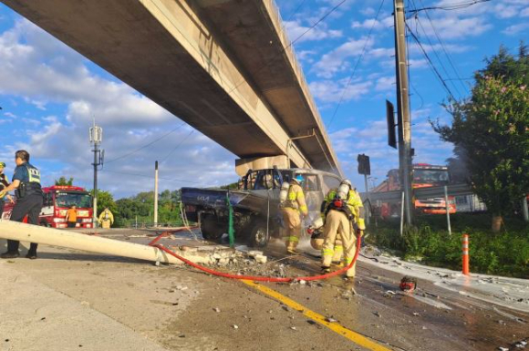 추락 이후 트럭에서는 화재가 발생했으며 이 사고로 트럭에 타고 있던 70대 운전자 A씨와 50대 B씨가 심정지 상태에 빠져 병원으로 이송됐으나 끝내 사망했다.
